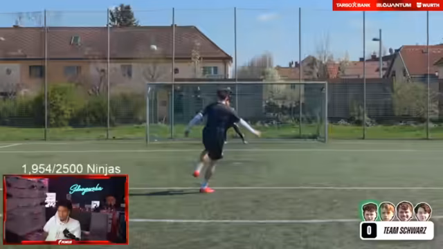 02:52:55Eine Fußball-Challenge mit den 'Waveboys' beginnt, bei der zwei Teams – Weiß und Schwarz – gebildet werden. Als besondere Gäste sind Profispieler wie Eldos und Basti eingeladen, und der Torwart Andi, mit über 300 Profispielen Erfahrung, wird vorgestellt. Die erste Challenge besteht darin, aus fünf Positionen Tore zu schiefen. Viele Teilnehmer, insbesondere aus dem Fortnite-Bereich, werden scharf kritisiert, da ihre grundlegenden Fußballfähigkeiten und Lauftechnik als mangelhaft empfunden werden. Das Team Weiß startet mit ungleicher Besetzung und muss Special Guests integrieren.
