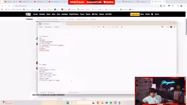 00:53:59Die NBA wird als zentrales Thema behandelt. Der Streamer analysiert die Mannschaften im Osten und Westen. Die Cleveland Cavaliers und die Boston Celtics sind seine Top-Favouriten für die Eastern Conference. Im Westen sieht er die Oklahoma City Thunder, die San Antonio Spurs und die Denver Nuggets als starke Konkurrenten. Seine Beurteilung der Teams geht oft über reine sportliche Analysen hinaus und enthält persönliche Präferenzen und Abneigungen, wie beispielsweise gegen die Detroit Pistons.