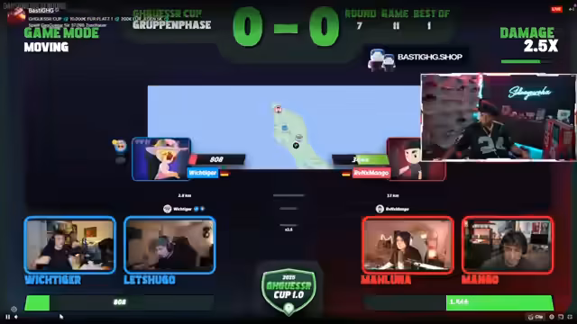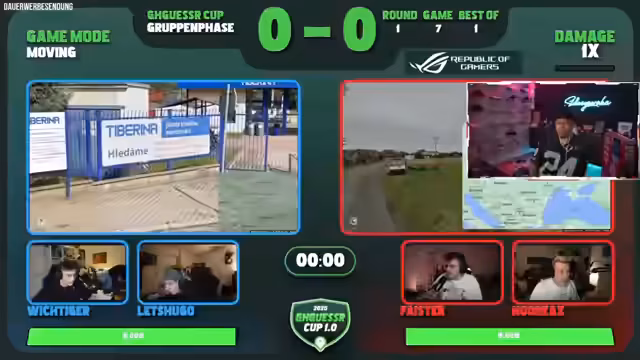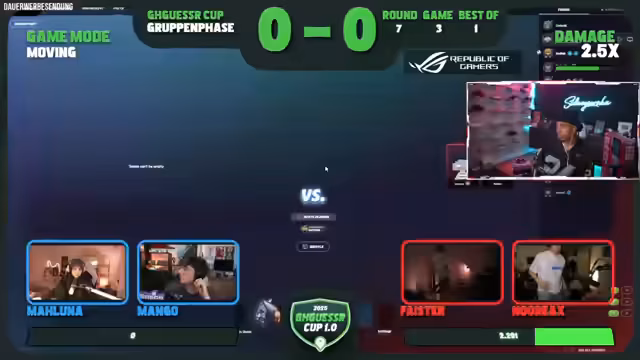 00:09:02Nach dem Streamstart wird das GeoGuessr-Turnier angekündigt, bei dem 10.000 Euro Preisgeld ausgespielt werden. Das Turnier startet sofort, und der Streamer befindet sich in der Vorbereitung. Es wird als 2v2-Teamwettbewerb gespielt, und die Teams werden ausgelost. Der Streamer ist mit Willi im Team und spielt gegen starke Gegner wie Cars Crafter und Stegi. Die Gruppenphase beginnt als 'No Move', d.h. die Teams können sich auf der Karte nicht bewegen.