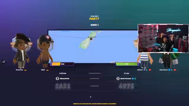 04:07:51Nach einigen gescheiterten Versuchen wird endlich Chile korrekt identifiziert, was als wichtiger Sieg gewertet wird. Es folgt eine weitere Runde, die aufgrund der fehlenden Sonne und des Linksverkehrs als extrem schwierig beschrieben wird. Nach Irland und Nordirland werden die Streamer fündig und stellen einen weiteren Punkt sicher. Das Spiel bleibt dabei durchgehend spannend und erfordert höchste Konzentration.
