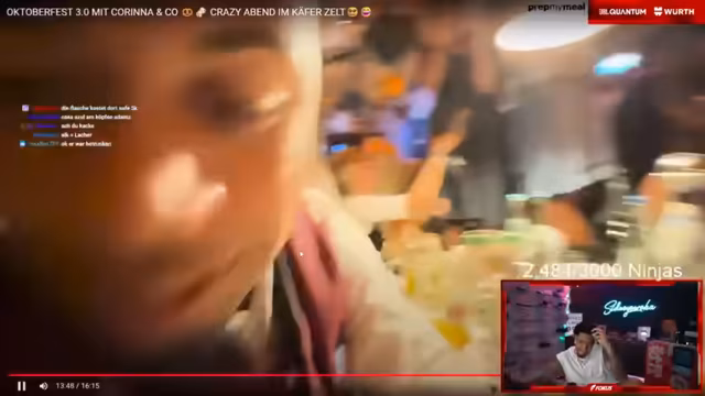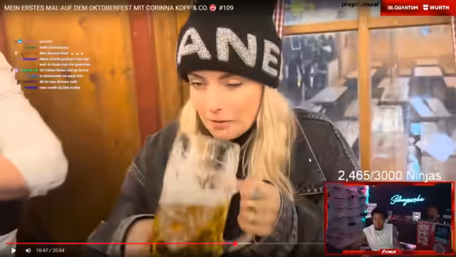 01:58:08Es wird von einer Taxifahrt für 100 Euro in Berlin berichtet und der hohen Hotelrechnung von 3.600 Euro für zwei Nächte, da man im gleichen Hotel wie Corinna übernachten wollte, um "Aura zu behalten". Es wird erwähnt, dass die Hotelpreise zum Oktoberfest generell sehr hoch sind, etwa 600 Euro pro Nacht für ein 4-Sterne-Hotel. Im Hotelzimmer angekommen, muss schnell ein Outfit für das Oktoberfest gefunden werden, da es bereits 17 Uhr ist. Es wird eine Lederhose als Outfit präsentiert. Anschließend wird erzählt, wie man sich mit einer Bekannten eine Tracht besorgt hat und ihre Begeisterung für Airwaves-Kaugummis erwähnt. Ein kurzes Fragment über ein "gottloses" Video vom Oktoberfest wird angeschnitten, das möglicherweise nicht im Stream gezeigt werden kann. Abschließend wird die Vorfreude auf das Oktoberfest betont und der Wunsch geäußert, dort richtig "Gas zu geben".