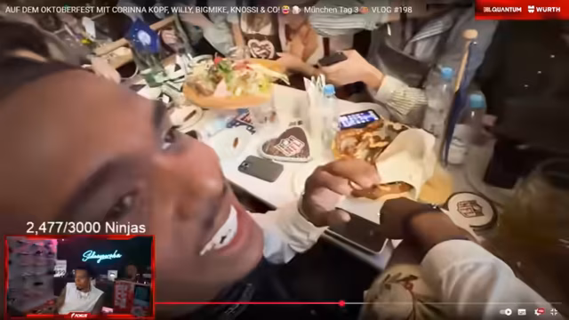 02:03:01Es wird die eigene Abneigung gegen Bier erwähnt, das aber auf dem Oktoberfest traditionsgemäß getrunken wird. Nach dem Besuch verschiedener Zelte, wo man einen Tisch hatte, setzt ein Filmriss ein. Am nächsten Morgen wacht man nackt im Bett auf, die Badewanne ist voller Wasser und man hat keine Ahnung, was passiert ist. Es stellt sich heraus, dass man im falschen Hotel gelandet ist und mit dem Personal diskutiert hat. Es wird vermutet, dass man etwa 27 Liter Bier getrunken hat und ohne sich zu verabschieden verschwunden ist, was zu besorgten Nachrichten von Freunden führte. Der erste Eindruck vom Oktoberfest wird als chaotisch beschrieben. Es wird ein Vergleich zu Malle gezogen, jedoch mit "besseren Frauen und mit Dresscode". Abschließend wird erwähnt, dass man sich während des Oktoberfestes im betrunkenen Zustand die FIFA-Spieler Kreuf und SIDAN gekauft hat, die man schon länger auf der Watchlist hatte.