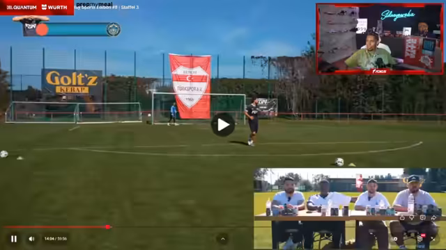 04:53:53Der erste Durchgang besteht aus einem Abschuss-Test, bei dem jeder Spieler fünfmal aus verschiedenen Positionen schießen muss. Die Juroren beobachten die Bewegungsabläufe und die Abschlussqualität. Nach den Schüssen der ersten drei Spieler (Paul, Niki und Vinny) fallen die Bewertungen eher niedrig aus, was die Jury verunsichert. Besonders Paul, der nicht für seine Torgefahr bekannt ist, und Niki enttäuschen in diesem Segment.