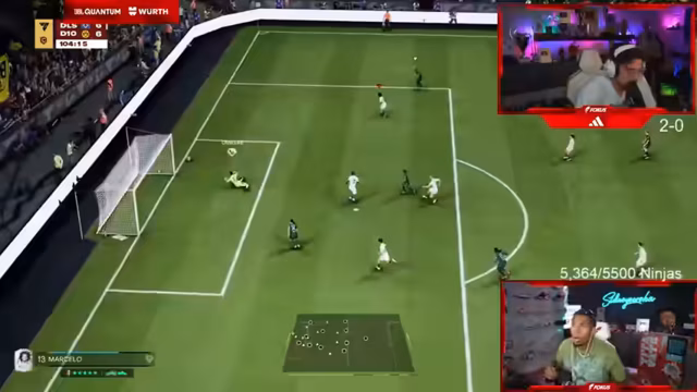 06:27:36Ein Spiel gegen einen starken Gegner gestaltet sich extrem turbulent und endet mit einem hohen Ergebnis. Der Streamer beschreibt, dass beide Teams mehrere Anschlussbug-Tore kassieren, eine Bug-Mechanik in FIFA, die Tore aus unmöglichen Positionen ermöglicht. Er ist frustriert über die Leistung seiner Abwehrspieler, insbesondere Cannavaro, und wirft ihnen mangelhafte Verteidigung vor. Er äußert den Wunsch, das Spiel zu beenden, da es zu anstrengend und zermürbend geworden ist.