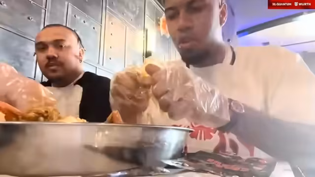 11:33:25Die Teilnehmer besuchen das Restaurant Nusret und bewerten verschiedene Gerichte. Der Burger erhält eine Bewertung von 8,5 von 10, während das Sushi ebenfalls als sehr gut empfunden wird. Anschließend geht es zu Cajun Seafood Boil & Bar, wo sie verschiedene Meeresfrüchte probieren. Die Muscheln und Shrimps werden hoch gelobt, insbesondere die Knoblauch-Butter-Sauce, die eine Wertung von 10 von 10 erhält. Die Gesamtstimmung ist enthusiastisch, die Bewertung liegt bei 9,5 von 10.