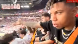 16:41:25Die Gruppe fährt mit einem Uber zum Spielgelände des Miami Heat Spiels. Sie unterhalten sich über die bisherigen Erfahrungen bei Spielen und stoßen auf einen Bären namens Knuckles. Der Streamer äußert seine Freude über die besserplätze Sitzposition in Reihe 22 und erwartet eine verbesserte Spielansicht.
