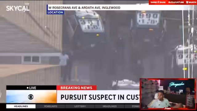 00:52:12Der Stream wechselt abrupt zu einem Live-Feed einer Polizeiverfolgungsjagd in Los Angeles. Der Kommentator beschreibt die Gefahr des Verdächtigen, der bei hoher Geschwindigkeit durch die Stadt fährt und dabei zahlreiche Beamte in Pkw und Helikoptern verfolgt. Die Reaktion des Streamers ist eine Mischung aus Faszination und Ungläubigkeit über die Geschehnisse. Er analysiert das Verhalten des Verdächtigen und vergleicht es mit dem in Deutschland, wo solche Situationen anders gehandhabt würden. Zum Schluss wird der Verdächtige festgenommen, was zu einer emotionalen Reaktion im Chat führt.