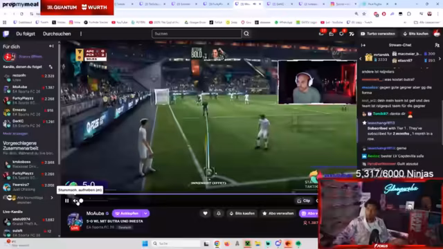 08:09:37Der Streamer erlebt weiterhin große Frustration in der Weekend League, insbesondere nach einer 3:1-Niederlage, die er dem gegnerischen Torhüter zuschreibt und diesen als 'Hurensohn-Keeper' beschimpft. Er droht damit, seinen eigenen Torhüter sofort zu verkaufen und Ter Stegen zu holen. Die Niederlage führt zu einer Bilanz von 8:3, und er stellt fest, dass er nur noch vier Spiele hat. Er ist mit 10 Siegen zufrieden, würde aber 11 als gut empfinden. Er analysiert sein Team und überlegt, welche Spieler er behalten oder verkaufen sollte, wobei er Saliba kritisiert. Die Spiele werden zunehmend 'sweaty' und nervenaufreibend, was ihn dazu bringt, seine Spielweise anzupassen und langsamer zu spielen, um keine Konter zu kassieren. Trotz der Schwierigkeiten versucht er, die verbleibenden Spiele zu gewinnen, um sein Ziel von 10 oder 11 Siegen zu erreichen.