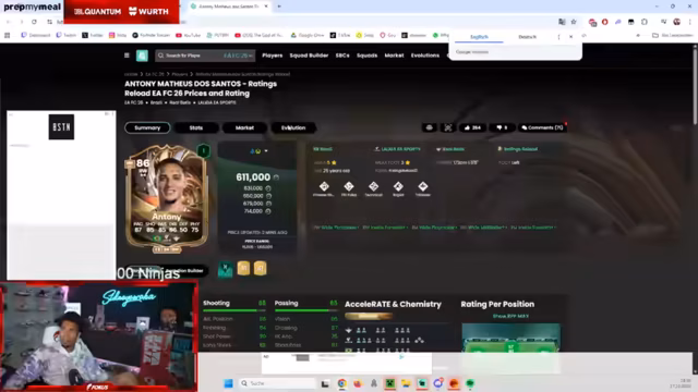 04:42:44Der Streamer überlegt, Frauen-Innenverteidiger auszuprobieren und diskutiert die Möglichkeit, Joro ins Team zu holen, stellt aber fest, dass dies zu teuer wäre. Er hat 3,2 Millionen Coins, aber die gewünschten Spieler würden 3,4 Millionen kosten. Er ist unzufrieden mit seinem aktuellen Team, da es viele neue Karten enthält, er aber Minus macht und das Team nicht cool genug findet. Er möchte ein anderes Team bauen und liebäugelt mit Spielern wie Eto'o. Er bewertet verschiedene Spieler und deren Playstyles, wie Vitinha, Caicedo Inform und Lauren James. Er sucht nach Chelsea-Links, um die Chemie seines Teams zu verbessern. Er überlegt, ob er Gusto spielen lassen kann und diskutiert die Chemie-Anpassungen, um alle Spieler auf volle Chemie zu bringen. Er stellt fest, dass Hakimi zu teuer ist und sucht nach Alternativen für die rechte Verteidigerposition, wie Frimpong oder Leimer Inform.
