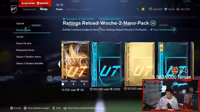 02:24:32Der Streamer startet ein Experiment, um zu sehen, wie viele Walkouts er aus Promopacks auf seinem Main- und dritten Account zieht. Er hat bereits drei 25k-Packs geöffnet und plant, weitere 45k- und 100k-Tradable-Packs zu öffnen, die insgesamt etwa 150 Euro kosten. Er wettet, sieben Walkouts zu ziehen. Bisher zieht er jedoch nur 'Arsch' und äußert sich kritisch über den Wert der Packs. Er diskutiert die Vor- und Nachteile von Pack-Openings gegenüber dem Grinden von Rivals oder dem Erledigen von SBCs. Die Vorfreude auf die anstehende Weekend League ist groß, obwohl er zugibt, dass sein RTG-Team noch nicht optimal ist. Er plant, heute ein paar Spiele auf dem RTG- und Main-Account zu absolvieren, um sich auf die Weekend League vorzubereiten.