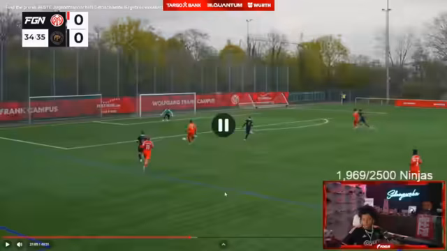 02:51:15Vor dem Spiel gegen die Mainzer U19 findet eine taktische Besprechung statt. Der Fokus liegt darauf, den gegnerischen Spielaufbau, der durch kurze Pässe erfolgen soll, frühzeitig zu stören. Man verfolgt eine aggressive Defensivstrategie, um den Raum enghalten und die körperliche Überlegenheit der erfahreneren Spieler ausnutzen zu können.