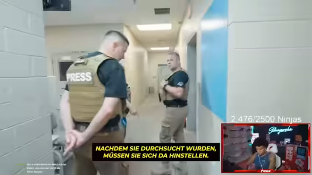 03:32:01Der Streamer zeigt einen Live-Blick ins US-Gefängnis. Er gibt eine Einführung in die amerikanische Justiz, die zwischen kurzem 'Jail' und langem 'Prison' unterscheidet. Es folgt eine Vorstellung des Systems, wie inhaftierte Personen aufgenommen werden. Von der Festnahme bis zur Fingerabdrucknahme und der ersten Suche. Es gibt eine Warnung, wie man sich verhalten muss, um nicht als Bedrohung zu gelten. Die Umgebung wird als intim und einschüchterend beschrieben.
