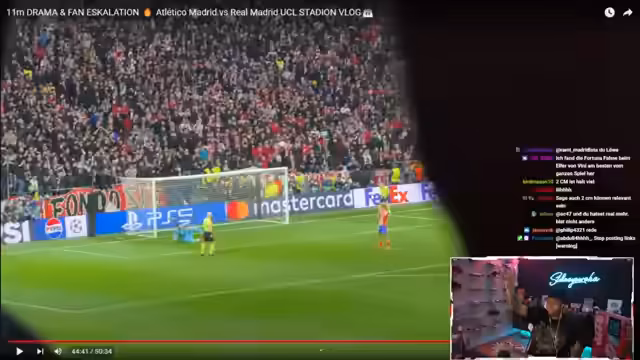 01:14:32Der Streamer freut sich darüber, dass er im Chat Erster ist, als ein neues Video von Anton veröffentlicht wird. Er plant, ein Bingo mit dem Chat zu veranstalten, während sie Antons Stadion-Vlog ansehen. Er überlegt, welche Bingo-Felder vorkommen könnten, wie z.B. Anton, der mit Taxifahrern Spanisch spricht, Essen lobt, einen Batschsprung macht oder ein Retro-Trikot von jemandem erwähnt. Weitere mögliche Felder sind Messi-Erwähnungen, das Zeigen eines Messi-Tattoos, Voice Cracks, das Verrutschen der Brille beim Jubeln oder das Loben der Architektur der Stadt. Der Streamer überlegt, welche zufälligen Szenen im Video vorkommen könnten und welche Klischees Anton bedient. Er erwähnt auch Placement mit OneFootball und fragt sich, ob Anton sich bei spannenden Momenten an die Haare packt.