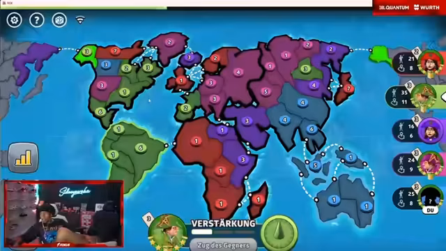 06:31:02Der Stream beginnt mit einem Live-Spiel des Brettspiels Risiko, bei dem der Streamer selbst und zwei weitere Teilnehmer, Musti und Eldos, mitspielen. Der Streamer übernimmt die Rolle des Moderators und Erklärers, da die Mitspieler die Regeln nicht kennen. Ziel ist es, Kontinente einzunehmen, um mehr Truppen zu erhalten. Der Streamer gibt strategische Ratschläge, doch Musti weigert sich zunächst, aktiv am Spiel teilzunehmen und verursacht dadurch Verwirrung und Frust. Der Stream betont die Wichtigkeit, jeden Zug einen Angriff durchzuführen, und versucht, die Spieler durch klare Anweisungen zu leiten, was jedoch auf große Schwierigkeiten stößt.