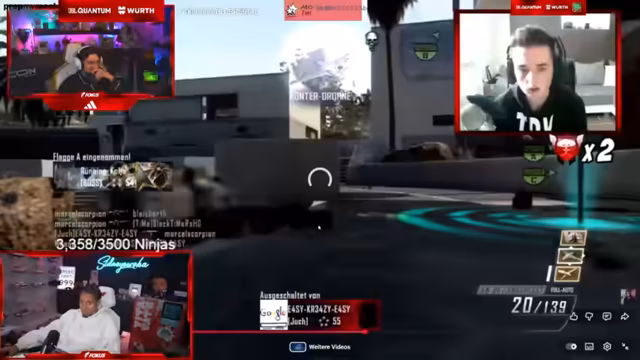 03:10:45Die Spieler starten in den neuen Modus 'Europäische Fußballstadien', wobei das erste Stadion in England identifiziert wird. Es wird festgestellt, dass die Zuschauer möglicherweise einen Vorteil haben, da sie die Standorte kennen könnten. Die Spieler versuchen, die Stadien anhand ihrer Namen und der geografischen Lage zu identifizieren, was sich als schwierig erweist, da nicht alle Spieler über umfassendes Fußballwissen verfügen. Die Frustration über die Schwierigkeit des Spiels und die Stärke der Gegner bleibt bestehen. Später wechselt der Fokus zu Call of Duty: Black Ops 2, wo die Spieler über ihre Erfahrungen mit dem Spiel, insbesondere über Nuklears und Dark Matter, sprechen. Die Schwierigkeit, in den aktuellen Lobbys erfolgreich zu sein, wird thematisiert, und die Spieler beklagen sich über das Skill-Based Matchmaking, das sie gegen sehr starke Gegner antreten lässt.