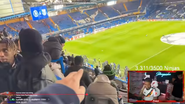 00:44:15Der Streamer ist in London angekommen, um das Champions League Spiel zwischen Chelsea und Barcelona zu verfolgen. Er befindet sich im Chelsea-Bereich, da er keinen Platz im Auswärtsblock von Barcelona bekommen konnte. Er trifft einen Chelsea-Fan, der einen 3:1-Sieg für Chelsea voraussagt. Der Streamer zeigt sich beeindruckt von der Größe des Stadions, der Stamford Bridge, obwohl er die Stimmung in Premier League Stadien als enttäuschend empfand, im Vergleich zu deutschen Spielen wie Hertha gegen Dresden. Er erwähnt, dass die Fans in der Premier League nicht so viel singen, außer bei Kontern oder Ecken. Die Amerikaner seien verwundert über die laute Atmosphäre und die Ultras in Europa. Er sitzt in der obersten Reihe des Stadions, was ihm einen weiten Blick über das Spielfeld ermöglicht.