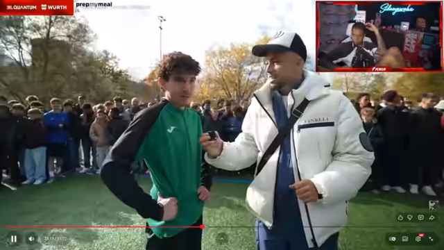 02:31:22Graham, ein 16-jähriger Spieler des FC Zürich, erzählt, wie er beim 1-gegen-1-Event von Kubanito gescoutet wurde und nun die Gelegenheit nutzt, erneut teilzunehmen, da es ihm großen Spaß macht. Er wird gebeten, einen seiner Skills zu zeigen. Sein Gegner ist Senai, ein 14-jähriger Spieler vom FC Luzern, der durch Markierungen auf TikTok und Instagram auf sich aufmerksam gemacht hat. Senai wird als klassischer Stürmer beschrieben, der trotz seiner jungen Jahre explosive und kraftvolle Bewegungen zeigt. Nach dem Match äußert sich Senai zufrieden mit dem Spiel und seinem Gegner und gibt als Botschaft an seine Freunde mit, niemals aufzugeben. Graham, der als Tier auf dem Platz beschrieben wird, empfand das Spiel als spannend und aufregend und verspricht für die nächste Runde einen Sieg.