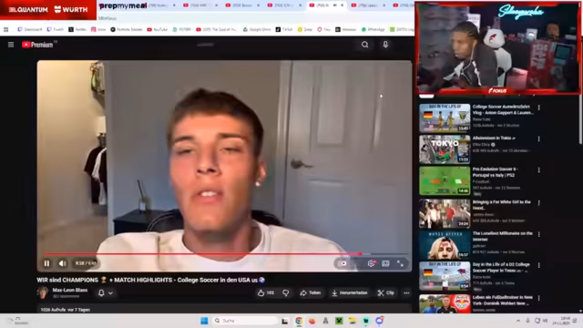 01:42:41Es wird eine Diskussion über verschiedene YouTube-Videoformate geführt, wobei der Fokus auf Fußball-Content liegt. Besonders interessant sind Videos über das Leben als College-Student-Athlet in den USA. Ein spezifisches Video mit dem Titel „Mein Alltag als College-Student Athlete in Kalifornien“ wird ausgewählt, da es Einblicke in den Alltag eines jungen Fußballers in den Vereinigten Staaten bietet. Es wird die Mühe kleiner YouTuber gewürdigt, die trotz geringerer Reichweite qualitativ hochwertige Inhalte produzieren. Der Streamer zeigt großes Interesse an den Details des College-Lebens, wie der Universität, dem Alter des Spielers und seinen früheren Stationen. Dies unterstreicht die Faszination für das amerikanische College-System und die Möglichkeiten, die es jungen Sportlern bietet.