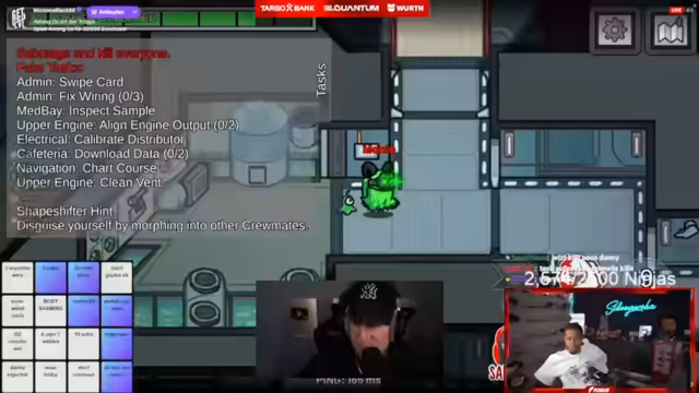 06:55:37In einer neuen Runde versucht der Streamer, seine aggressive Strategie umzusetzen. Er tötet gezielt einen Mitspieler, der ihm verdächtig vorkam. Sein Plan, in der darauffolgenden Diskussionsrunde den Verdacht auf einen anderen zu lenken, scheitert jedoch. Die Mitspiänger sehen durch seine Handlung sofort, dass er der Imposter ist, und stimmen gegen ihn. Der Streamer gibt zu, dass er die Runde falsch gespielt hat, und konzentriert sich auf die Aufgaben.