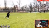 00:56:14Der Streamer startet ein Football-Challenge-Event mit seinen Freunden Can und Flo. Das Event findet auf dem 'Sternerplatz' statt und beinhaltet verschiedene Aufgaben, wie Elfmeterschießen und Flankenverwertung. Der Einsatz für die Verlierer ist ein Döner und Bubble Tea. Die Atmosphäre ist ausgelassen, und der Streamer vergleicht sich selbst bewusst mit Profis, wobei er sowohl Lob als auch Kritik an den Leistungen der Teilnehmer übt.