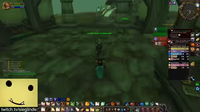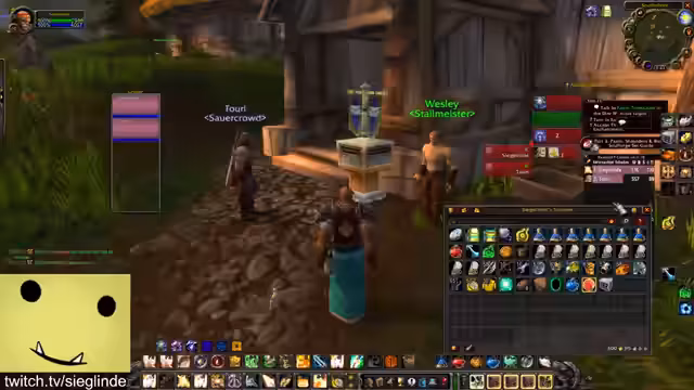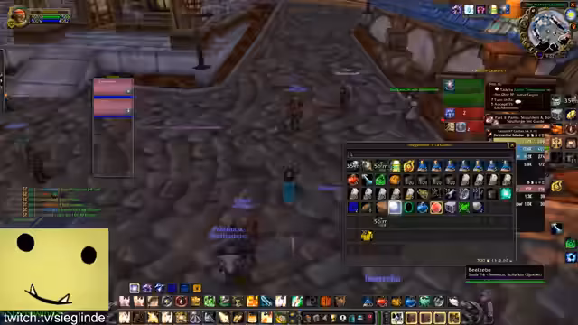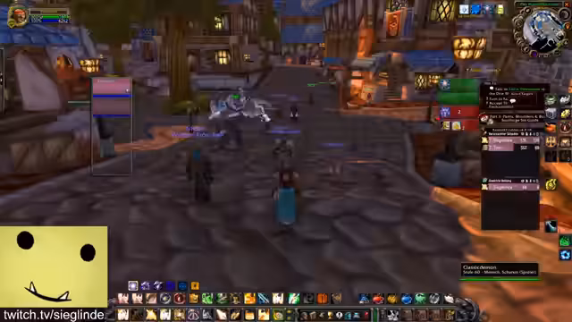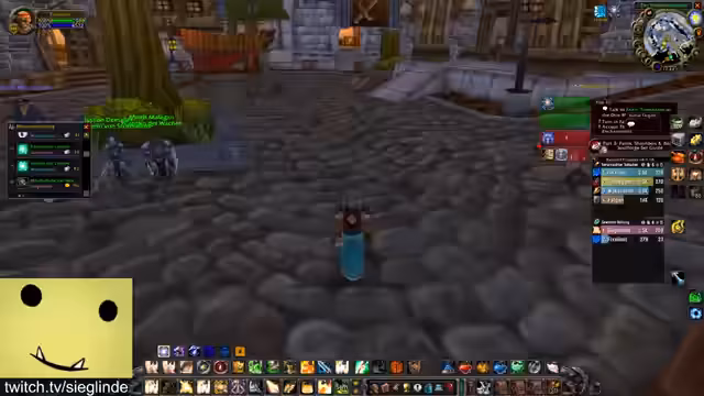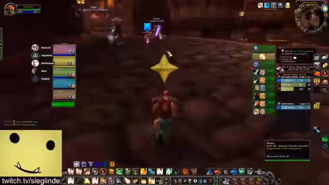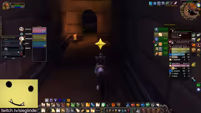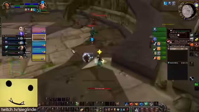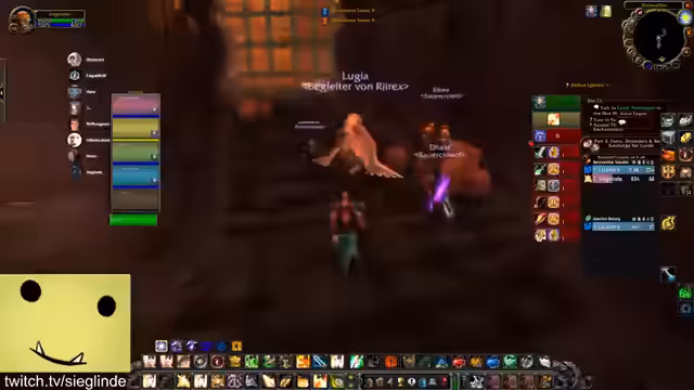 01:30:20Die Streamerin ist zunächst über die aktuelle Questsituation verwirrt und versucht, den Stand der verschiedenen Questlinien wie Helden von Darylshire, Von Liebe und Familie und die Forging Quest zu klären. Sie diskutiert mit dem Chat, welche Quest als Nächstes fällig ist und versucht, den Weg für das benötigte Schild und das Buch in der Elitezone zu finden. Anschließend geht es Richtung Scholomance und Half-Glen, wobei die Quests geteilt und gemeinsam absolviert werden.