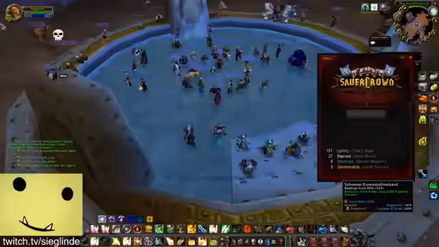 01:54:23Ein Spieler namens Daniel Movo stirbt durch einen unbedachten Fehler in Feralas. Anstatt nur in den mit Streifen markierten, sicheren Bereichen zu schwimmen, gerät er in die unmarkte Mitte des Gebiets. Dort erhält er den Debuff 'Erschöpfung', der ihm kontinuierlich Lebenspunkte kostet. Da das visuelle Feedback für den Debuff sehr klein ist, bemerkt er es nicht rechtzeitig und stirbt. Der Streamer stellt fest, dass dieser Fehler vermieden werden kann, wenn man auf das Spiel konzentriert ist.