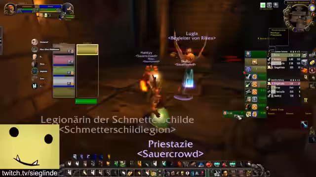 10:24:02Im Chat werden Glückwünsche zum achten Twitch-Jubiläum der Streamerin geäußert. Die Streamerin reagiert positiv und nimmt sich Zeit, um die Grüße zu würdigen. Gleichzeitig werden Anfragen zur Teilnahme an anstehenden Dungeons wie LBRS (Lower Blackrock Spire) gesammelt und koordiniert. Es werden Pläne für zwei separate Gruppen geschmiedet: eine für das Leveln und eine für den Endgame-Inhalt, wobei die Zusammenarbeit zwischen den Gruppen angedacht ist.