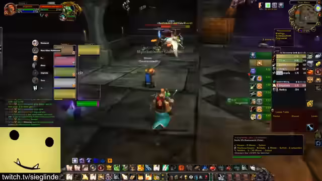 09:50:36Die Konzentration liegt auf den Mechaniken im Dungeon Scholomance. Ein spezifischer Bug, bei dem ein Spieler fast stirbt, wird ausführlich analysiert und als geiler Clippotenzial bezeichnet. Die Streamerin erklärt, wie man Agro ohne spezielle Talente halten kann und wie man mit Aggro-Resets umgehen muss. Es werden Fehler wie das zu langsame Ziehen des Bosses kritisiert, um einen effizienten Run zu gewährleisten.
