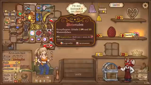 05:12:53Der Stream beginnt mit einem strategischen Fokus auf das sofortige Bauen von Gegenständen. Die Streamerin betont, dass es wichtig sei, Items zu bauen, um sie zu nutzen. Sie beginnt mit 240 Gold und erhält ein Stein-Item, das 110 Rüstung bietet, und ein Mana-Item. Nach einem Sieg, bei dem ein Blut-Amulett erbeutet wird, wird der Bau eines Blut-Dolches in Erwägung gezogen. Die Kombination dieses Dolches mit einer Banane wird als starke Combo angesehen, da der Dolch durch den Stun der Banane sofort aktiviert wird und kontinuierlich Schaden durch Blutung verursacht.