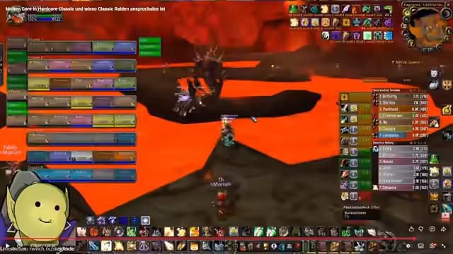 04:25:21Bei der Durchsicht eines Molten Core Runs werden die Mobs und deren Mechanics analysiert. Besonders gefährlich werden die 'Lava-Charger' identifiziert, die einen Knockback verursachen, sowie Hunde, die Stuns und AOE-Zauber wirken. Der Paladin-Feuerwiderstand und die Bubble-Fähigkeit zur Stun-Immunität werden als essenziell für den Raid-Erfolg herausgestellt. Die Mobs generieren insgesamt wenig Schaden für die Heiler.