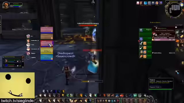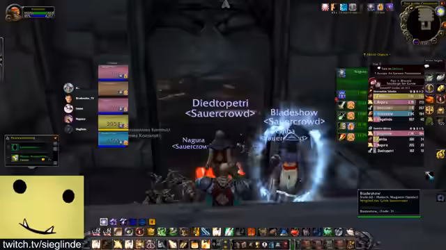 11:05:30Nach dem Sieg über den Sänger und einer kurzen Pause zur Loot-Verteilung, zieht die Gruppe weiter. Es folgt der Kampf gegen Magmata, eine Magmawesen-Patrouille, bei der auf ständigen Schaden und das Ziehen der Mobs geachtet werden werden muss. Der Fokus liegt darauf, eine chaotische Gruppenbildung zu vermeiden. Unmittelbar danach folgt der Kampf gegen die Lucifertochter. Ein Hunter ist speziell dafür verantwortlich, den 'Raserei'-Debuff des Bosses mit seinem Einfühlungsschuss zu entfernen, während alle Spieler vor Feuerflächen ausweichen müssen.