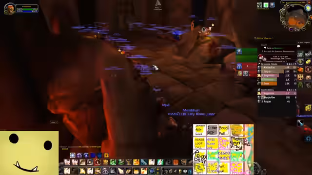 11:15:11Die Gruppe setzt ihren Weg durch Molten Core fort und wird von Feuerelementaren und Riesen aufgehalten. Bei den Riesen müssen die Spieler besonders auf die Abstandshaltung an den Klippen achten, da diese Knockback-Fähigkeiten besitzen. Die Kommunikation und Koordination sind hier entscheidend, um Angriffe der Riesen auf den Raid zu verhindern. Die Streamerin betont die Notwendigkeit, Fokus auf die Tankziele zu legen und keinen Schaden auf nicht angesprochene Mobs zu verteilen, um die Kontrolle zu behalten.