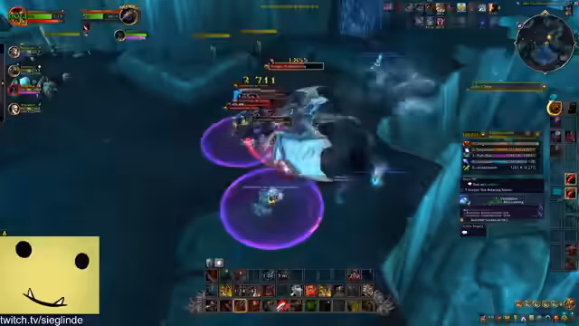 02:07:39Die Gruppe betritt einen Dungeon, wobei die Kommunikation und Koordination im Fokus stehen. Der Streamer weist auf wichtige Fähigkeiten wie Dispel hin, die einen Cooldown haben, aber extrem stark im Spiel sind, da sie debuffs entfernt. Es kommt zu technischen Problemen, bei denen sich Spieler in Housing Areas teleportieren, um zu vermeiden, dass sie Instanzgruppen verlassen und wieder neu beitreten müssen. Eine spezifische Dungeon-Mechanik wird erklärt: Kleine Blubs auf dem Boden müssen beseitigt werden, da sie eine Bar hochstacken und einen gefährlichen Boss-Mob aktivieren würden, den die Gruppe nicht anziehen möchte.
