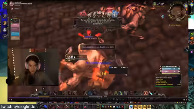 01:43:55Die Streamerin erkennt einen Fehler bei den Einstellungen des Dungeons und korrigiert diese schnell. Während des Spielgeschehens in Sethekk Halls stellt sie fest, dass ihr Schaden im Vergleich zu den Gruppenmitgliedern gering ausfällt. Sie denkt kurz über die Talente für ihren Fury Warrior nach, entscheidet sich aber gegen eine Umskillung in der laufenden Instanz. Parallel dazu diskutiert sie die anstehende Sauerkraut-Community-Raid-Phase, bei der eine Auswahl stattfinden wird.
