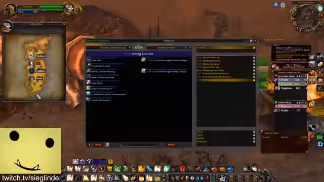 06:43:07Die Streamerin möchte die Rezepte für das Teufelsstoff-Set (Kapuze und Schultern) für ihren Twink-Charakter erlernen. Diese Rezepte sind weltweite Random Drops und müssen in den Banken gesucht werden. Es werden mehrere Gildenmitglieder kontaktiert, um herauszufinden, ob jemand bereits diese Rezepte besitzt. Gleichzeitig wird der Arcanit-Wandler für einen anderen Charakter benötigt, wofür bestimmte Barren und Vitriol nötig sind.