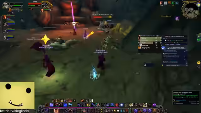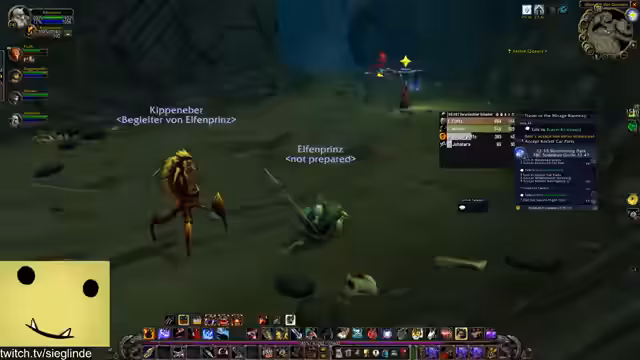 03:50:26Die Spieler befinden sich im Dungeon Racer von Downs im Brachland. Die Stimmung ist entspannt, doch es werden auch die Herausforderungen von Raids angesprochen. Die Organisation solcher Events sei das Schwierigste am Spiel. Aktuell werden Drops, wie ein Umhang mit Agilität, bei einem Boss mit 90,2% Lebenspunkten angestrebt, wobei das Rezepte der Kochquest oft von jemand anderem angenommen wird. Die Notwendigkeit von Taunts wird betont, um den Overwachtank zu unterstützen.