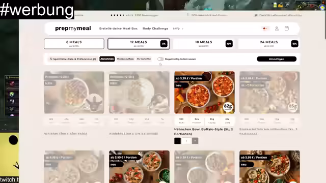 01:55:20Im Stream wird der Sponsor 'Prep My Meal' vorgestellt und beworben. Die Streamerin empfiehlt persönlich die XL-Gerichte des Unternehmens, die tiefgekühlt geliefert werden und einen hohen Proteingehalt aufweisen. Die Vorteile wie zeitersparende Zubereitung, gute Preis-Leistung und die Vielfalt der Gerichte werden hervorgehoben. Ein exklusiver Gutscheincode wird im Chat geteilt.