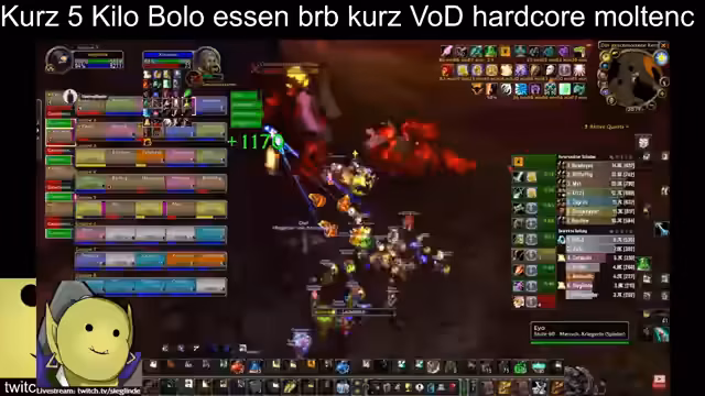 09:33:36Der Streamer muss den Stream für eine kurze Zeit unterbrechen, da ein persönliches Ereignis dazwischenkommt. Er geht kurz weg und bittet das Publikum, sich in der Zwischenzeit alte Aufzeichnungen des Moldencore Raids anzusehen. Nach seiner Rückkehr setzt er den Raid fort und berichtet von den aktuellen Vorbereitungen und der Verteilung der Rollen im Raid.