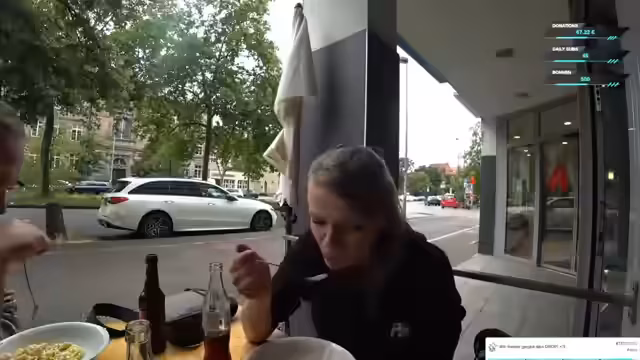 01:23:40Die Streamerinnen sind auf der Suche nach einer gesunden Essensalternative und stehen vor der Wahl zwischen verschiedenen Saladbars und Restaurants in Nürnberg. Zunächst wird die Öffnungszeiten von 'Mundvoll' und einer weiteren, neueren Location recherchiert. Die Entscheidung fällt schließlich zugunsten des neuen Lokals, da es Vorteile beim Parken bietet und sie etwas Neues ausprobieren wollen. Die aktuelle Reise nach Nürnberg wird ebenfalls thematisiert.