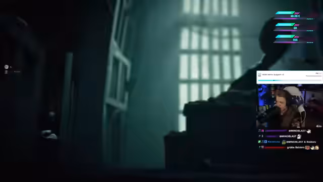 03:00:16Als Reaktion auf die häufigen Tode im Spiel schlägt der Streamer spontan einen Spendenfrosch vor, bei jedem Tod würden 10 Euro in einen Topf fließen. Im weiteren Spielverlauf gelingt es den beiden, sich gemeinsam durch einen Abschnitt zu hangeln, indem sie eine Leiter herunterlassen und schließlich eine Tür öffnen, um in einen neuen Bereich zu gelangen.