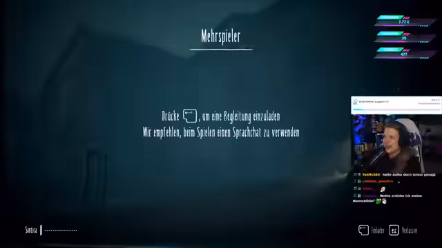 02:11:53Nachdem die technischen Probleme gelöst sind, beginnt der gemeinsame Spielstart von Little Nightmare 3 mit Shanti. Beide tauschen sich gegenseitig Unterstützungs-Bits aus und freuen sich auf die Kooperation. Der Streamer kündigt an, sich gegenseitig im Spiel zu helfen und findet den gemeinsamen Start lustig, da beide als schreckhaft gelten und sich wahrscheinlich gegenseitig erschrecken werden.