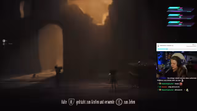 05:31:32Die Streamer kämpfen mit der Steuerung und den Rätseln im Spiel Little Nightmare. Es kommt zu Verwirrung, da Charaktere nicht automatisch festhalten und die Navigation durch Sprünge und Ziehen von Objekten fehlerhaft verläuft. Es entstehen hektische Situationen, in denen die Spieler sich gegenseitig blockieren oder Anweisungen missverstehen, was den Spielfluss hemmt und die Frustration steigert. Der Sprechstil ist ungeduldig und enthält viele unvollständige Sätze und Exklamationen.