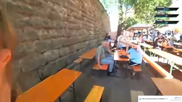 00:06:17Der Stream beginnt mit der Ankunft des Streamers und seiner Begleiter in Nürnberg. Ursprünglich war der Plan, Minigolf zu spielen, jedoch wird aufgrund des starken Andrangs am Samstagnachmittag und der Ferien eine spontane Planänderung vorgenommen. Statt des geplanten Minigolfs wird beschlossen, das stattfindende Bierfest im Burggraben der Nürnberger Burg zu besuchen, um dort Ritterspiele und das Festambiente zu erleben. Dieser Wechsel wird im Chat kommuniziert und begrüßt.