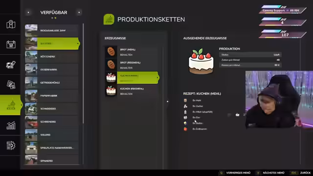 00:37:30Während des Spiels thematisiert der Streamer seinen aktuellen Hang zu 'Cozy-Games'. Spiele wie der Landwirtschaftssimulator, Sims oder World of Warcraft empfindet er als entspannend und als Alternative zu stressigen Shootern. Er erörtert auch den Mehrwert des gemeinsamen Spielens. Zwar macht es ihm Spaß, alleine zu spielen, aber er erkennt, dass das Spiel durch Kooperation mit anderen, zum Beispiel bei der gemeinsamen Ernte, deutlich anreizvoller werden könnte. Gleichzeitig erwähnt er, dass er oft Zeit für sich braucht, nachdem er gestreamt hat, um seine soziale Batterie wieder aufzuladen.