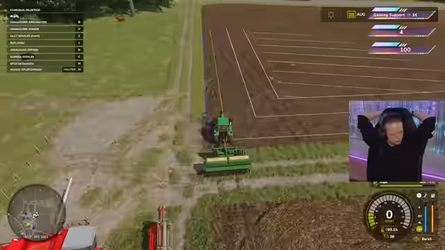 00:20:41Nach dem Abstimmungsergebnis startet der Streamer in den Landwirtschaftssimulator. Als absoluter Neuling im Spiel ist er sich unsicher, ob die Steuerung mit Maus und Tastatur funktioniert. Die ersten Versuche, den Trecker zu bedienen und zu pflügen, gestalten sich schwierig und fühlen sich für ihn wie eine Fahrschule an. Er stolpert über die grundlegenden Mechaniken, wie das Vorbereiten des Saatbetts, das Aussäen von Raps und die Bedienung der landwirtschaftlichen Geräte, was zu einigen chaotischen Momenten führt.