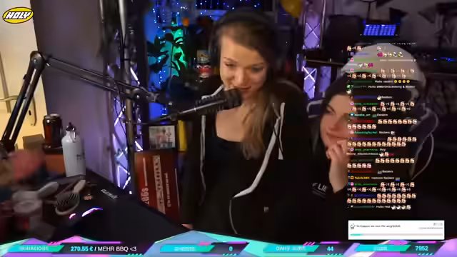 01:14:23Nach den ersten ASMR-Versuchen gibt es Rückmeldungen aus dem Chat. Viele finden die Geräusche angenehm, aber auch intensiv und teilweise durch laute Hintergrundgeräusche wie das Kichern des Gastes oder das Wasser aus der Leitung unterbrochen. Die Streamerin erkennt technische Probleme, da das Mikrofon falsch herum montiert war und daher asymmetrische Aufnahmen produziert. Sie bittet um Nachsicht, da es ihr erstes Mal mit einem ASMR-Mikrofon ist, und möchte die Session fortsetzen, um sich an das Equipment zu gewöhnen und die für den Barbecue-Teil notwendigen Geräusche vom Smoker einzufangen.