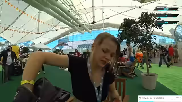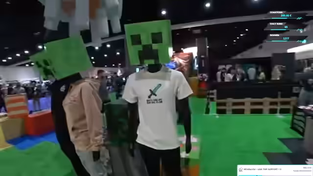 02:00:52Die Streamerin erkundet die TwitchCon in San Diego, angefangen mit einem spontanen Fotostand vor dem 'History Heart of San Diego'. Sie gibt Einblicke in die Messeatmosphäre, die helle Halle und die zahlreichen Aufblasfiguren. Ihre Stimmung ist enthusiastisch und sie plant, die Eindrücke später auf Instagram zu teilen. Während der Erkundung wird sie mehrfach von Zuschauern angesprochen, was sie als überraschend und positiv empfindet, auch wenn die Kommunikation aufgrund der Sprachbarriere erschwert ist.