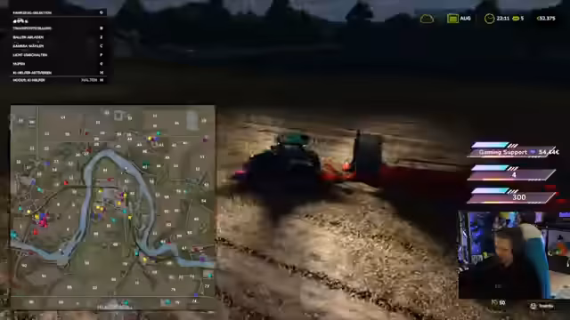 00:03:54Nach den technischen Problemen starten die Streamer in das Spiel 'Landwirtschaftssimulator'. Sie beginnen mit einem Shopping-Besuch im Spiel, um grundlegende Gerätschaften zu erwerben. Die Streamerin zeigt dabei eine Tendenz, schnell viel Geld auszugeben, was sie selbst humorvoll kommentiert, da sie zunächst keine Einnahmen erzielen. Es kommt zu Diskussionen über die Anschaffung eines teuren Mähdreschers, wobei der Chat Ratschläge gibt und darauf hinweist, dass das Mieten von Geräten eine kostengünstigere Alternative für den Anfang sein könnte.