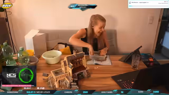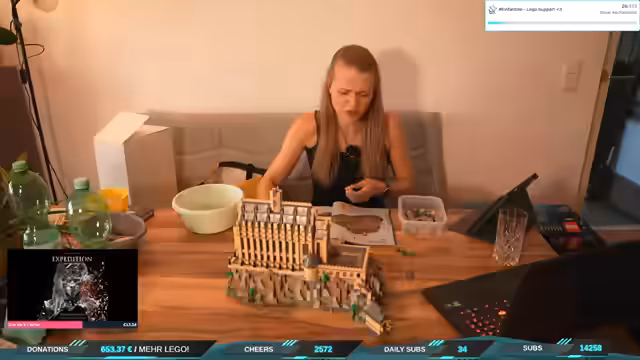 01:51:59Der Lego-Stream beginnt, jedoch treten sofort technische Schwierigkeiten auf. Der Streamer bemängelt ein lautes TTS-System, das durch einen früheren Test des YouTube-Videos verursacht wurde, und Probleme mit dem Delay des Mikrofons. Trotzdem wird das neue Overlay eines Viewers gelobt und ein Supporter namens Dörte für ihre Spende erwähnt. Der Fokus liegt auf der Behebung der technischen Störungen, um einen reibungslosen Ablauf für den Bau des Lego-Schlosses zu gewährleisten.
