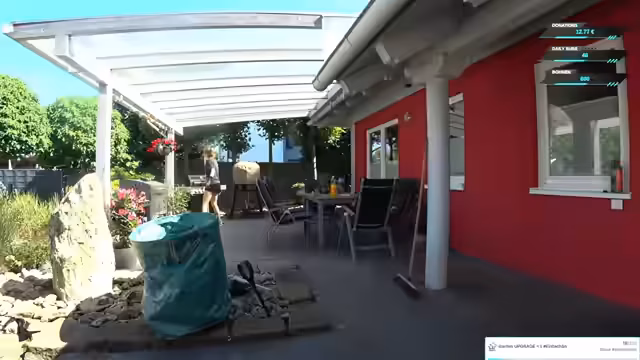 02:27:37Der Stream wechselt den Standort in den Garten, was zu technischen Schwierigkeiten führt. Kabelprobleme und instabile Verbindungen sorgen für Verzögerungen und Unterbrechungen. Gleichzeitig beginnt die Gartenarbeit, bei der Unkraut auf der Terrasse gejätet werden soll. Der Streamer zeigt das große Grundstück und die Halle auf dem Gelände, die auch für Events genutzt wird. Er spricht über die Vor- und Nachteile des Gewerbegebiets, in dem er lebt, und die damit verbundenen lauten Arbeiten der Nachbarn.